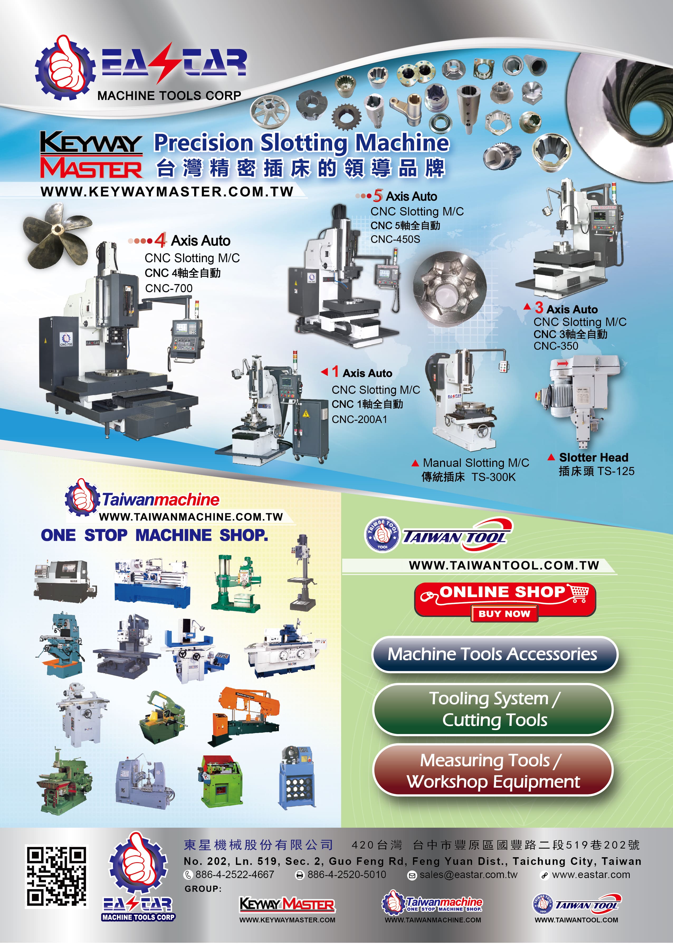 Eastar Machine Tools Corp., founded in 1967, is a professional manufacturer of both traditional and CNC Slotting Machine with a 6000 square meter factory area located in the central part of Taiwan. In 2009, a series of CNC Education Machines including Train Mill & Train Turning Lathe were developed for both industrial & educational market.