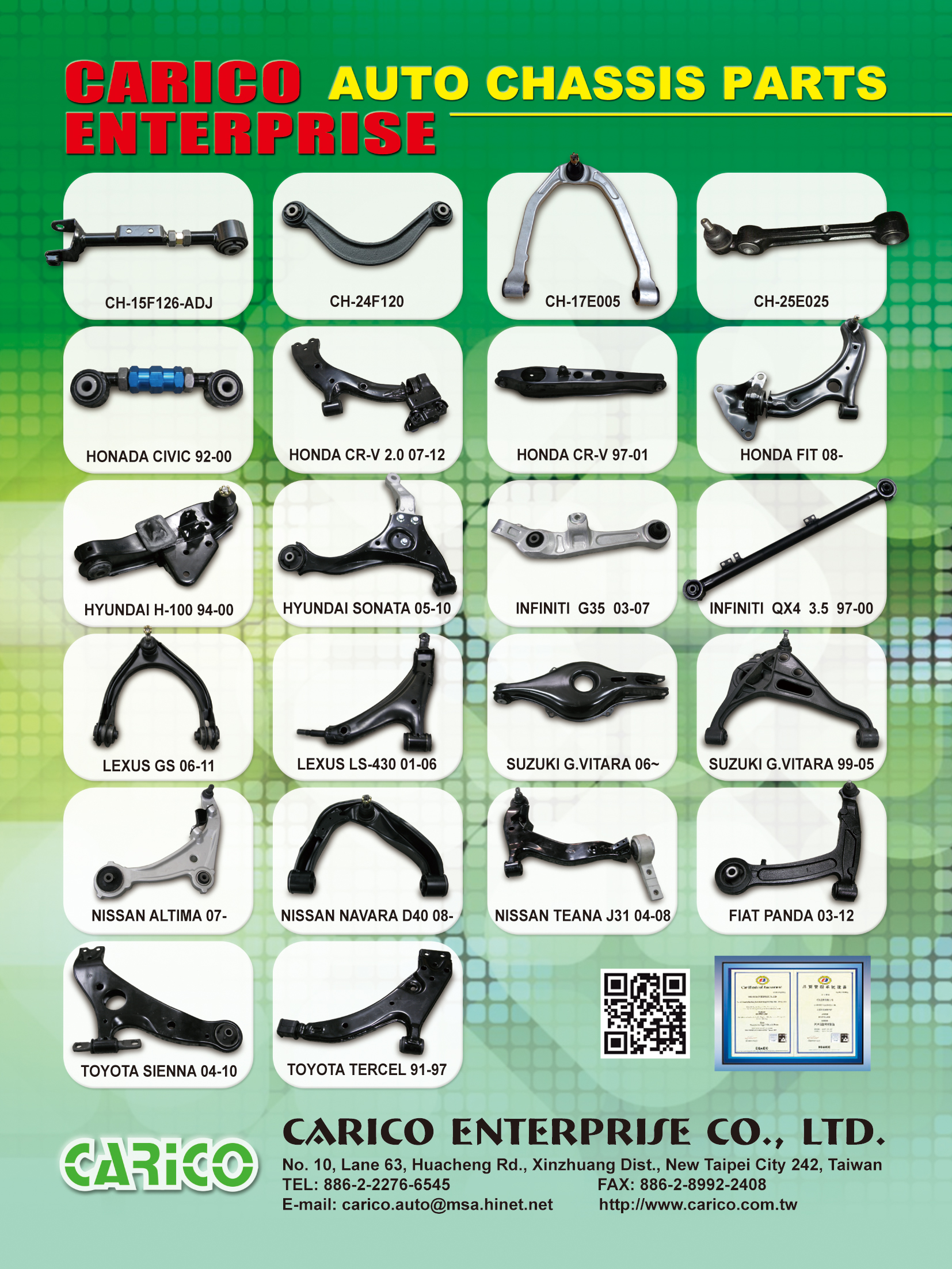In Taiwan! We are providing a large list of the suspension system, steering system, brake system, and engine system.