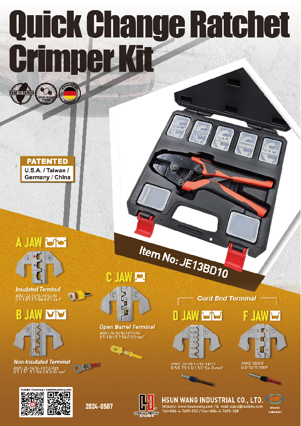 Hsun Wang is specialized in crimping tools and related accessories for electrical and automotive market since 1997.Our famous exchangeable crimper and thread coil insert repair tool are granted patents in Germany, USA, Taiwan and China.