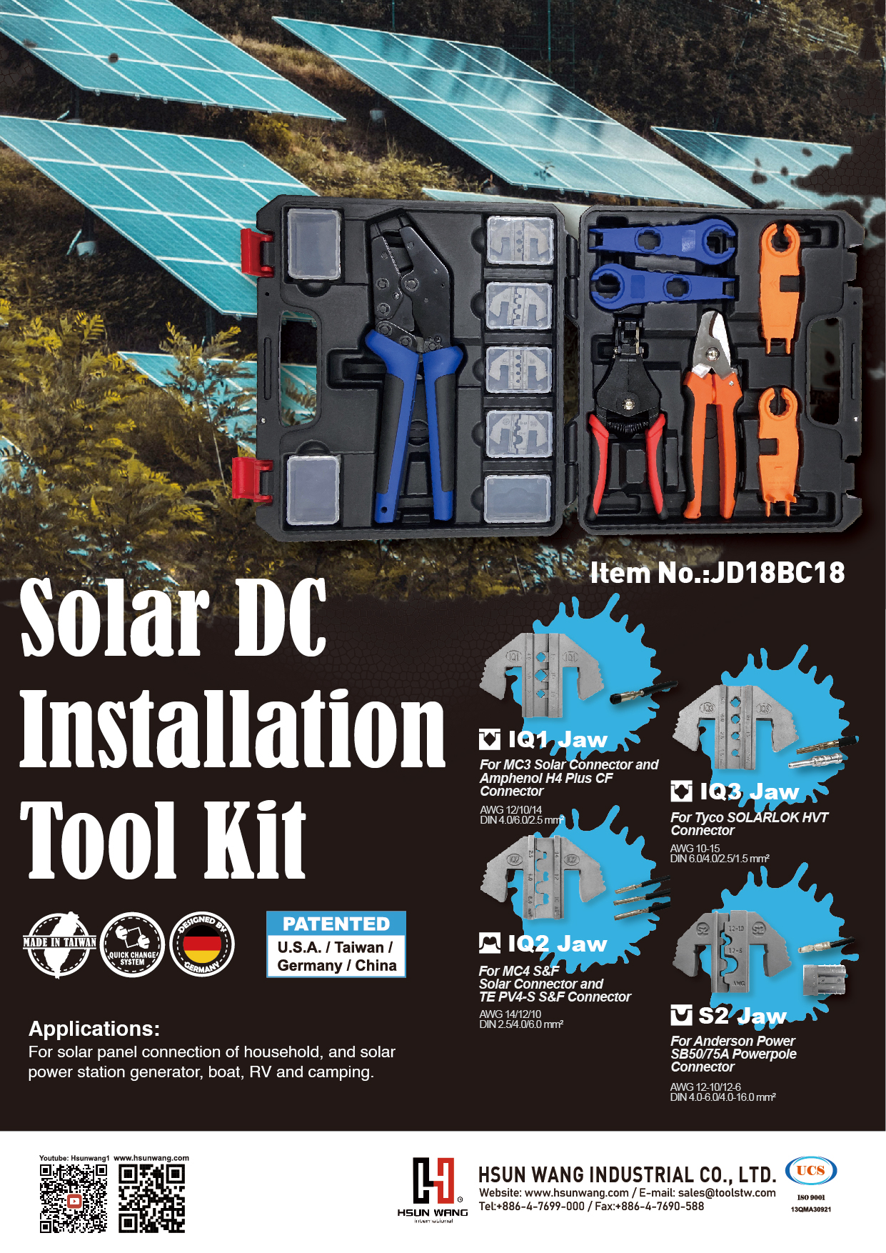 With technical support from German partners, Hsun Wang continually launches new and cutting-edge products to fulfill the market demand every year. Not only that, Hsun Wang has earned well reputation in the industry around the world because of high precision performance and German-designed-made-in-Taiwan quality.As a pioneer and export of crimping tool, many customers cooperate with us to develop new crimping die sets to have advantages in the market.