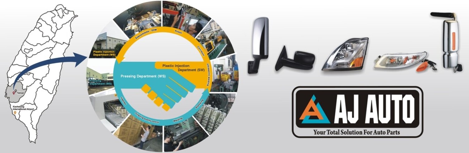 Anchoring Junction Co. Ltd. (AJ AUTO) was built in 2016. We have been working in North America aftermarket for decades. Our main products are mirrors, and can provide almost 3000 SKU#. Besides, we carry on fender liner, door handles, coolant tanks, and window regulators…etc. We understand what customers need whether on price or quality. We can quote based on Partlinks# or OEM#.