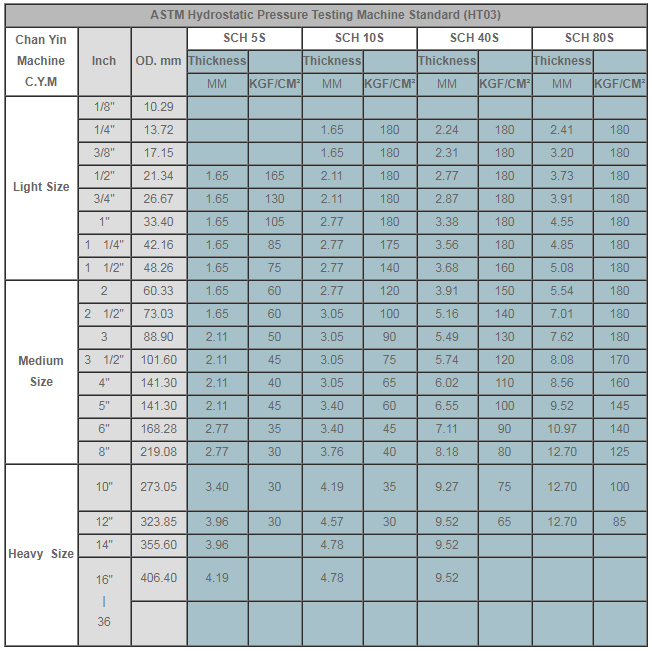 The machine is made to test the inside of steel tube/pipe pressure. It is using water to inspect whether the steel has been welded properly or not or can be figure out the steel is flawed or not and also what will be the maximum pressure that can sustain for the stainless steel tube/pipe to reach consumer requirement. There are three different testing size as light size for small tube, medium size and heavy size for large diameter pipe.