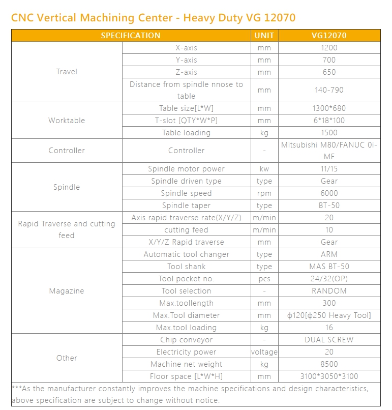 CNC Vertical Machining Center - Heavy Duty VG 12070 VG Series ---offer CNC Vertical Machining Center manufacturers 3 axis high rigidity structure design