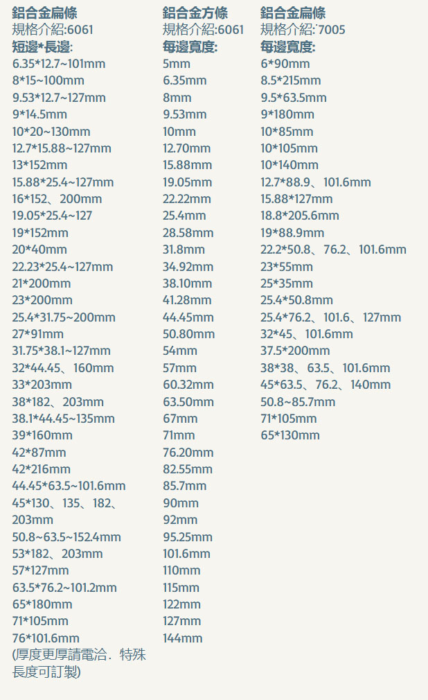 Aluminum alloys: square bars, square tubes, flat bars, flat tubes, round bars, round tubes (6061, 6063, 6463, 7075) Aluminum extrusion die manufacturing: angle aluminum, T-shaped aluminum