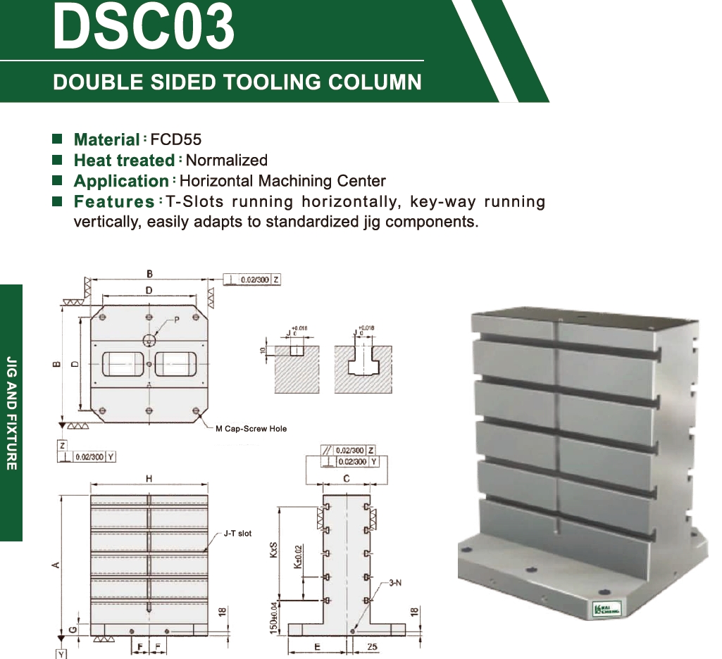 4.Features: T-Slots running horizontally,key-way running vertically,easily adapts to standardized jig components