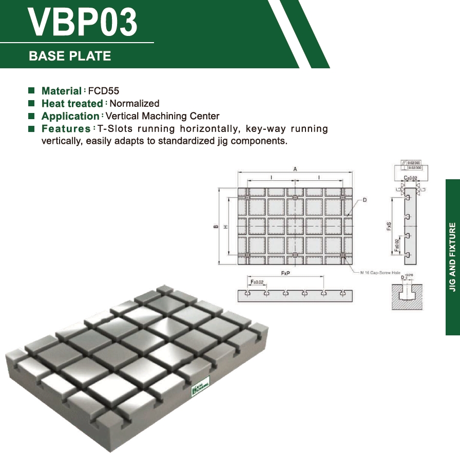 1.Material:FCD550 2.Heat treated:Normalized 3.Application:Vertical Machining Center 4.Features:T-Slots running horizontally,key-way running vertically,easily adapts to standardized jig components