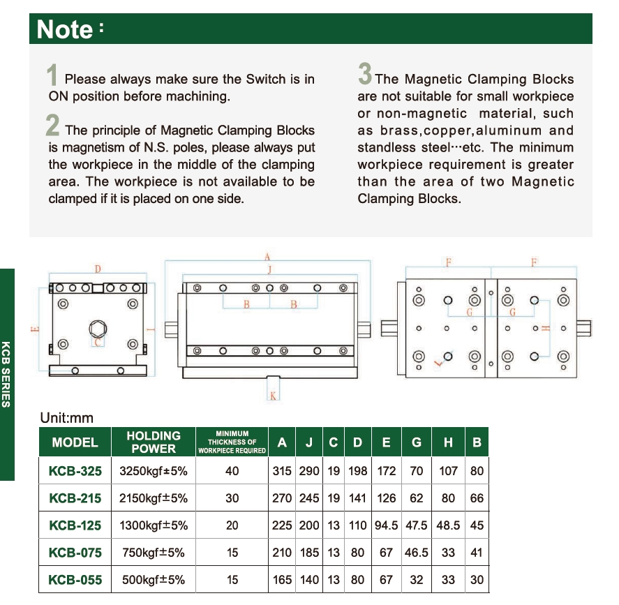 3. The minimum workpiece requirement is greater than the area of two Magnetic Clamping Blocks.