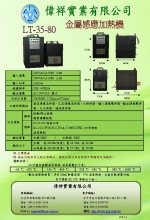 偉祥實業最先進的電晶體式感應加熱機,不需要接觸工件,卻能夠加熱各種材質。它能加熱鐵、鋼、合金鋼、不銹鋼、鈦、鋁、銅、青銅、黃銅、石墨和其他材質,已廣泛應用於硬化、退火、回火、鍛造、銀焊、錫焊、熔解、熱縮配合、鐵管焊接、PVC、ABC塑膠品植入金屬和其他各種用途。