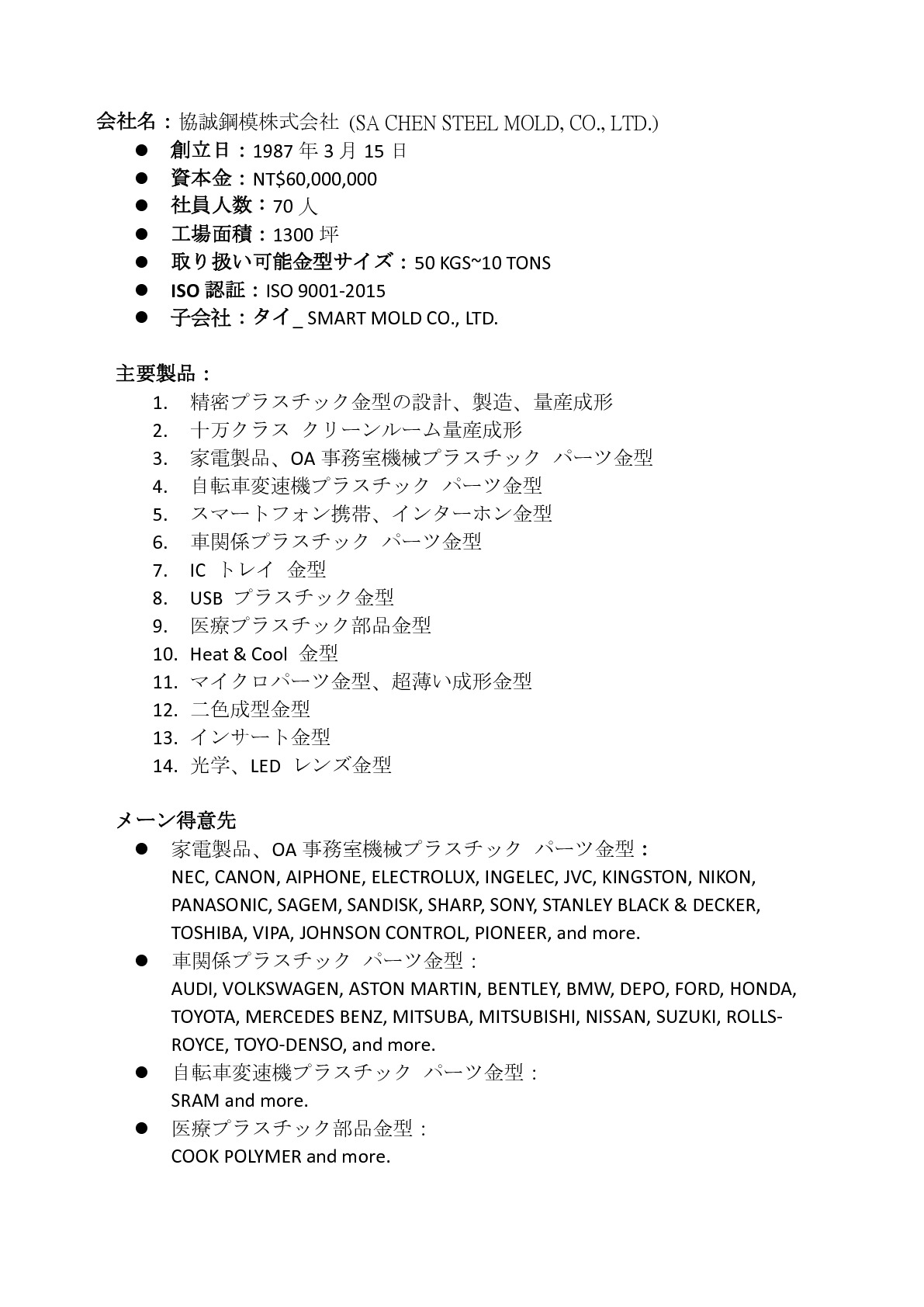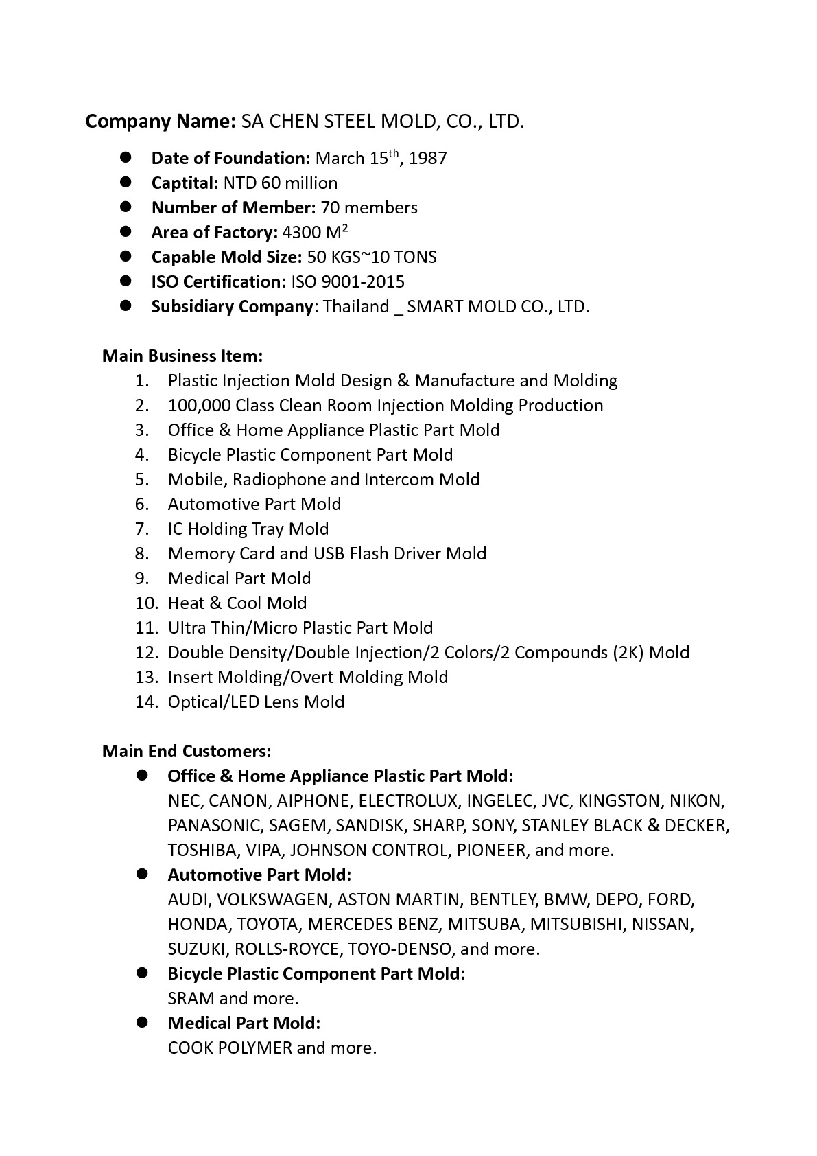 SA CHEN STEEL MOLD CO., LTD.
