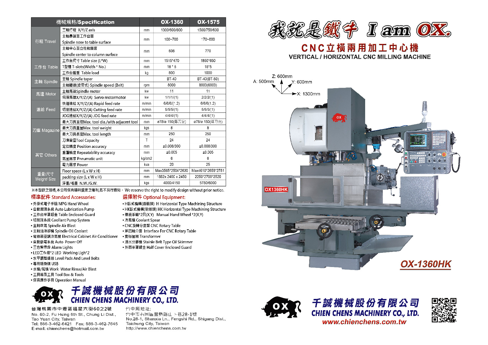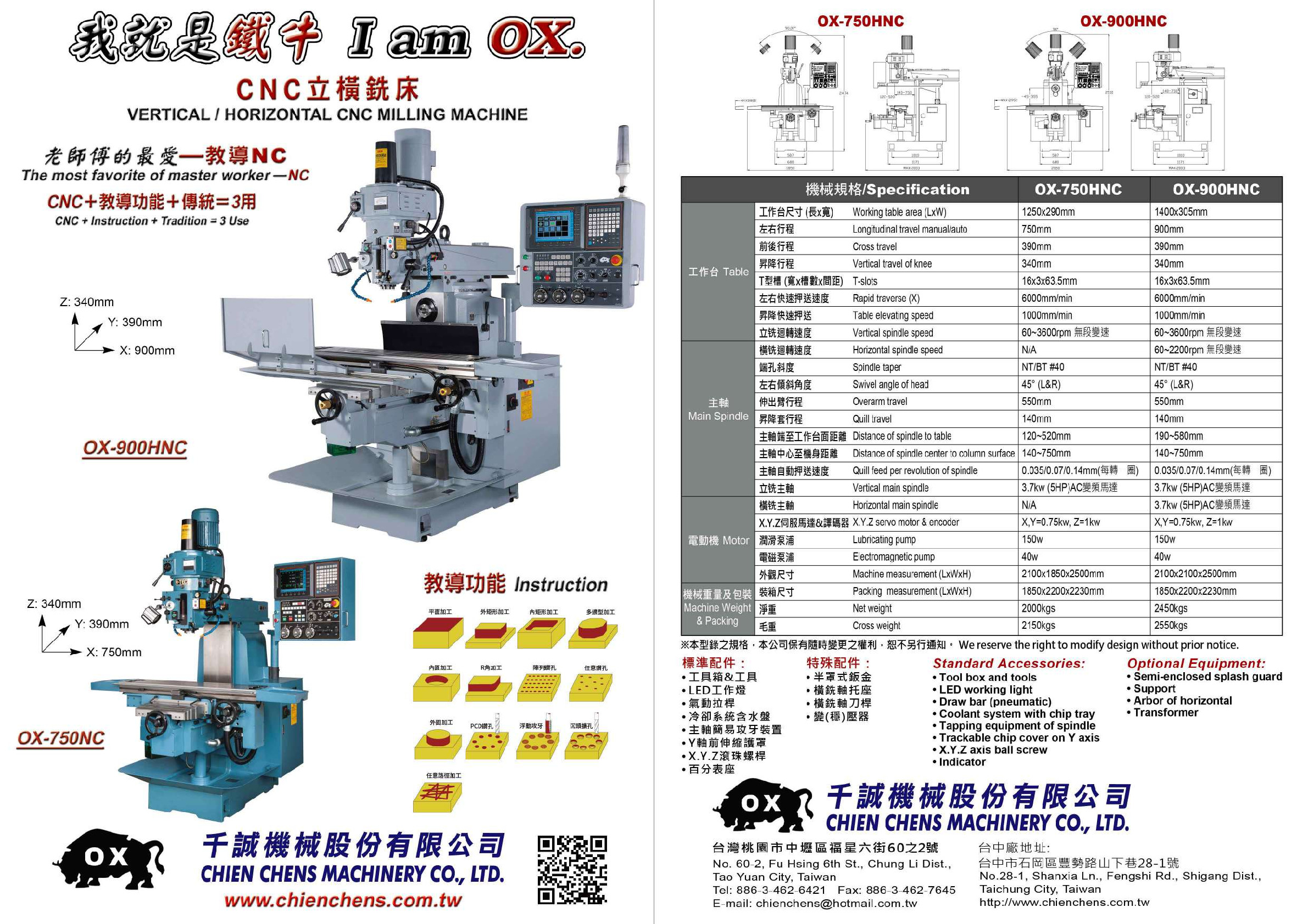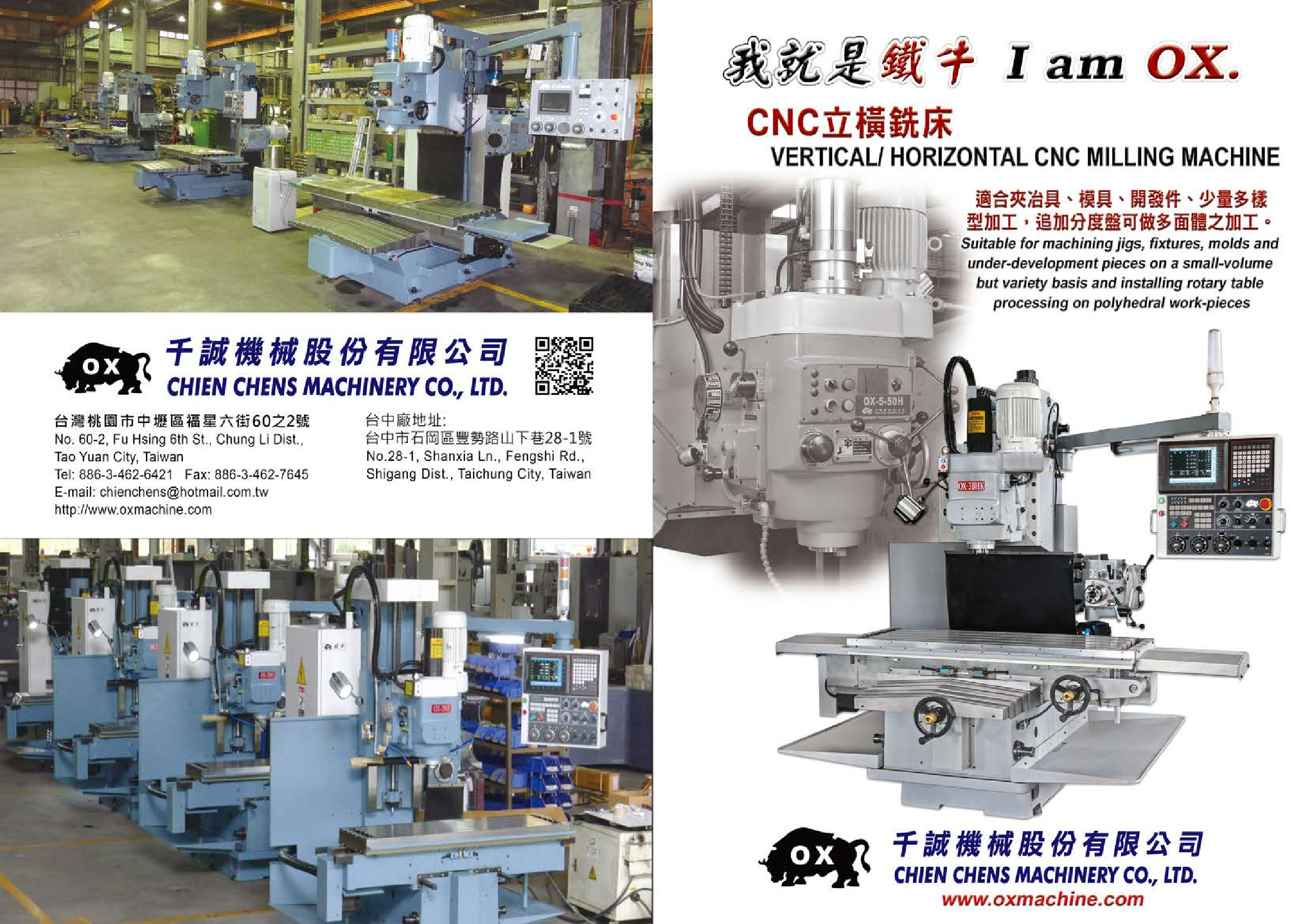 千誠機械股份有限公司創立於1989年,營業初期以代理各種工作母機及機器的維修服務為主,1996年開始自行研發強力搪銑床並自創「鐵牛」之品牌,期以製造出一部精密耐用又具有鐵牛精神之搪銑床,讓國內外業者認為這就是真正的「機械之光-台灣精品」,經過兩年的努力於1998年正式推出的OX-1機型,立即獲得業界的高度肯定及熱烈訂購, 因此自2000年至2010年期間再陸續推出OX-2、OX-3、OX-5、OX-6、OX-5-50H、OX-5B-50H、OX-6-50H、OX-6B-50H等一系列機種,如此專業又完整的系列,期許能滿足客戶精密加工的需求。