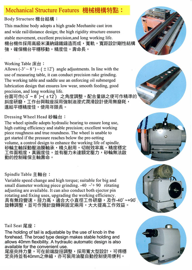 元挺公司創設於1994年,專業製造CNC磨床機械,由一群具有20年以上專研磨床設計、組裝之經驗及技術的工程人員組成,提供機械產業所需之高精度磨床設備,並以創新、品質、服務之宗旨,服務國內外客戶,歡迎指教。專業製造之CNC電腦機床包括萬能圓筒磨床、萬能刀工具磨床、螺紋及滑軌磨床,以及自動化產業機械。