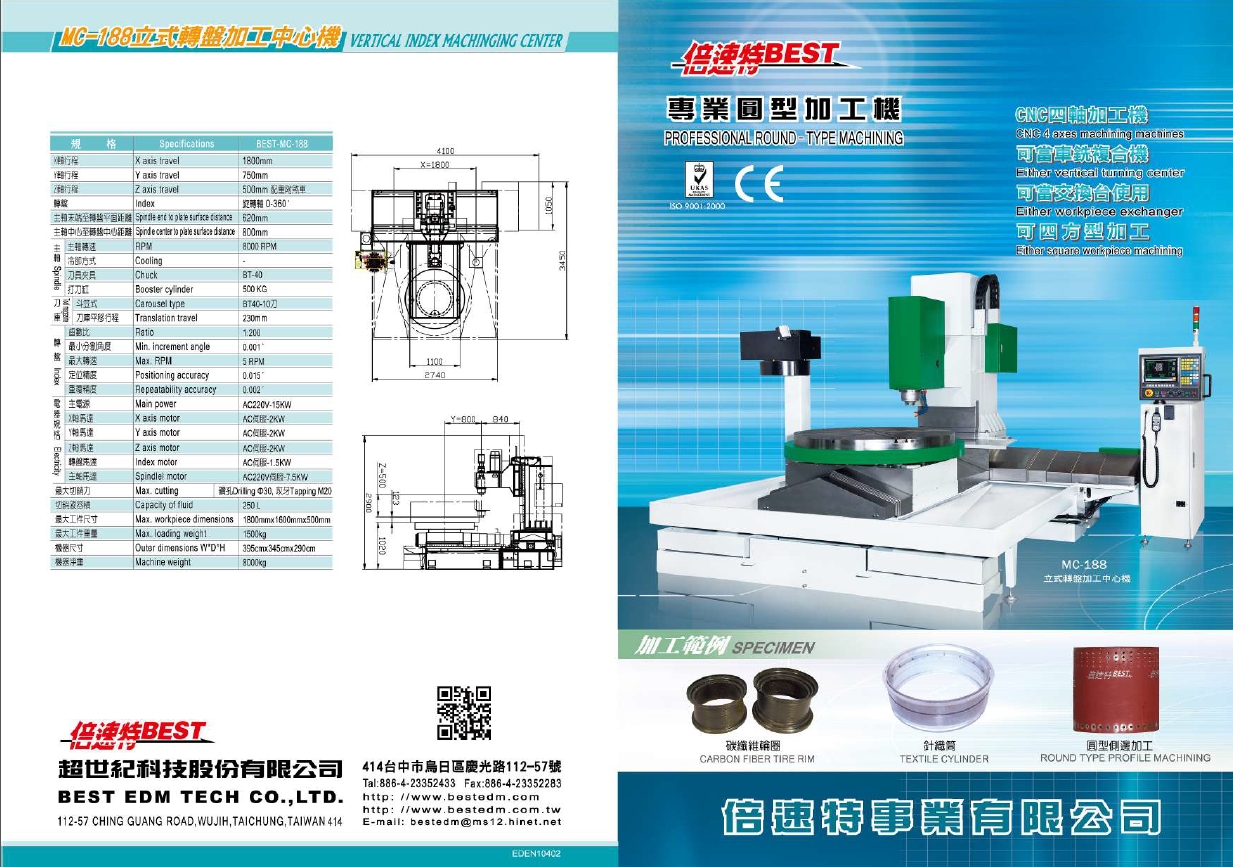 客製化放電加工機與電腦數控分度盤連結機種,更跨領域研發出專用CNC多軸圓型加工中心機。