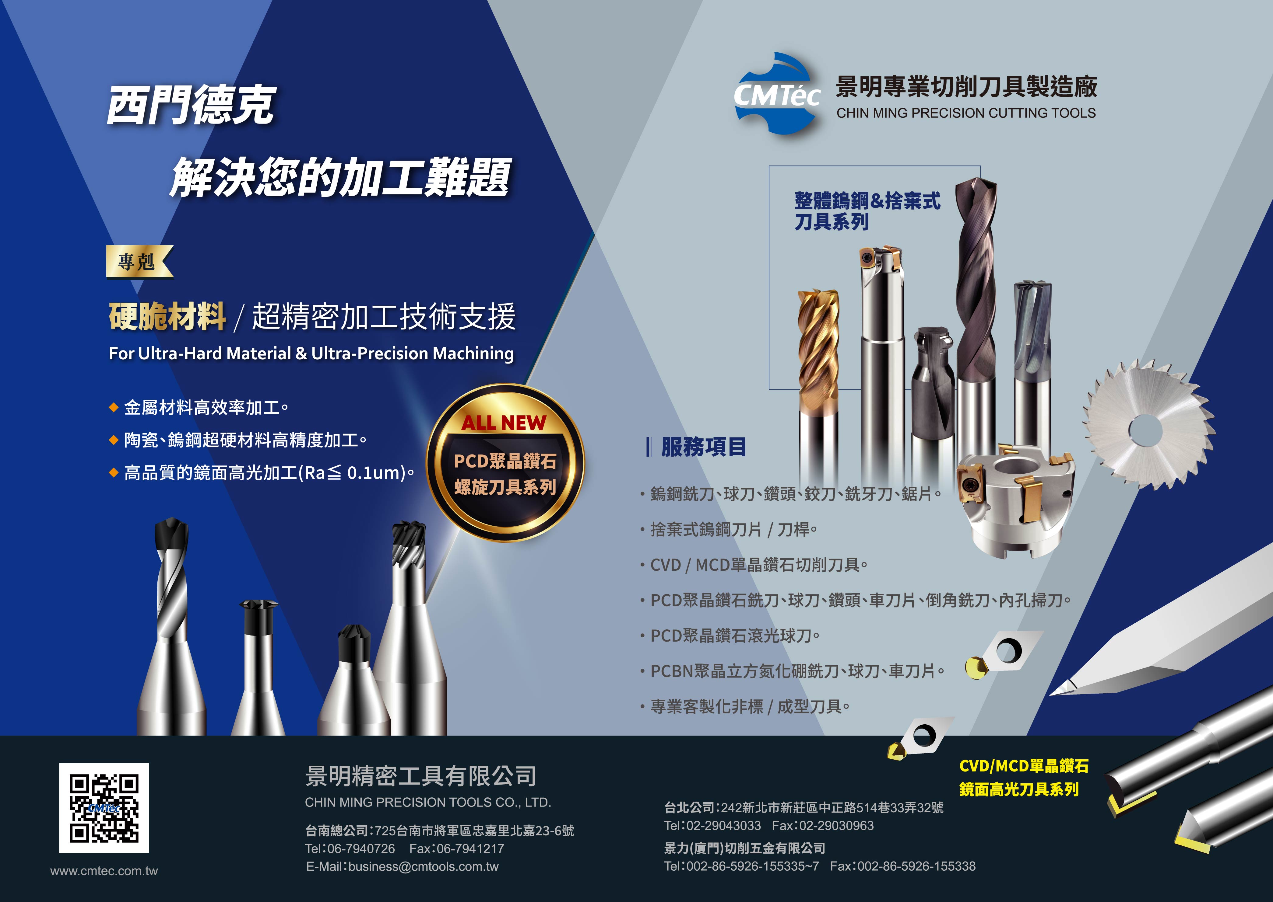 西門德克刀具成立於1987年,秉持著「不斷研發、精益求精」之理念創立台灣知名品牌,持續在航太、汽車、機械、模具、電子和醫療等各大工業領域,針對不同加工材質,研發高精準、高效率、高壽命之切削刀具 (銑、鑽、鉸、搪、車、切斷、螺紋),堅持提供客戶高品質之產品。