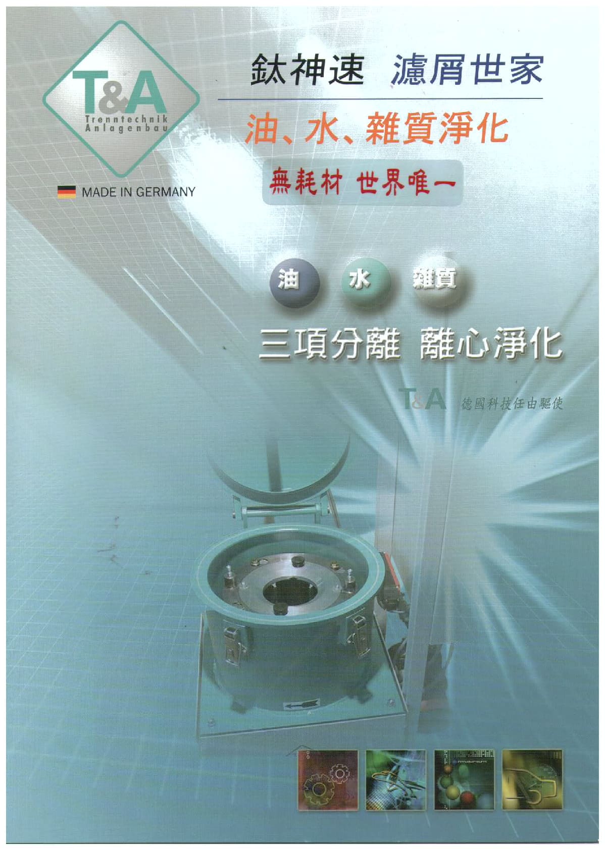 德國 T&A 鈦神速濾屑世家 油/水/雜質三項分離 離心淨化設備。