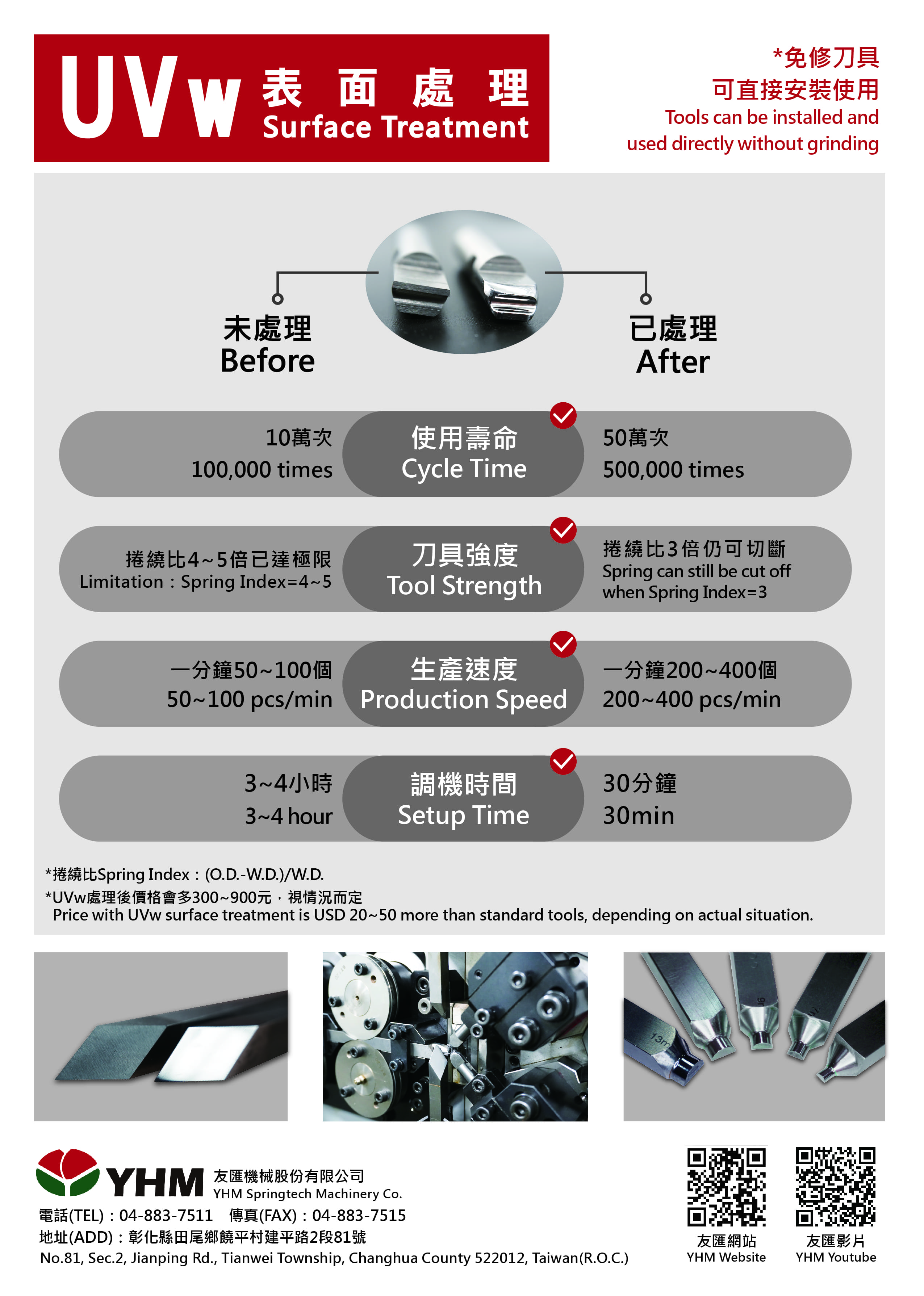 友匯機械股份有限公司─台灣彈簧機的領導生產企業,在微小彈簧領域,已是國際知名厰商,CNC 空心線圈製造機、CNC 鎢絲燈芯製造機、CNC 螺紋護套製造機、CNC 細管折彎機、CNC 油封簧製造機與接圓機...等,具全面生產技術,居國際領導地位。在過去的20年,友匯專注於研發各種數控專用機,凡是與線材、板材、矩線、管材的折彎、成型、捲繞、繞線、沖壓、倒角、搓牙、攻牙、磨尖、傳送、鍛頭等動作與組裝,都有對應的專用機,涵蓋領域遍及各行各業。