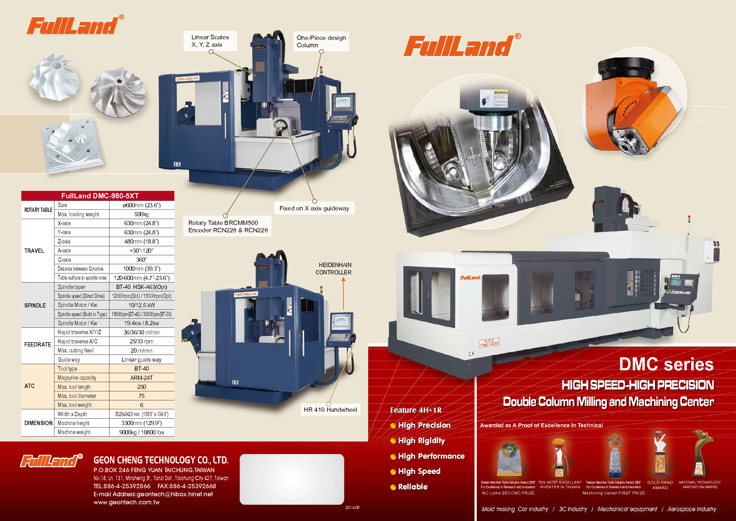 2001 ● 迎合市場之模具加工設備需求,引進國外技術,開發高速、高效率、高扭力之DMC龍門式加工中心機