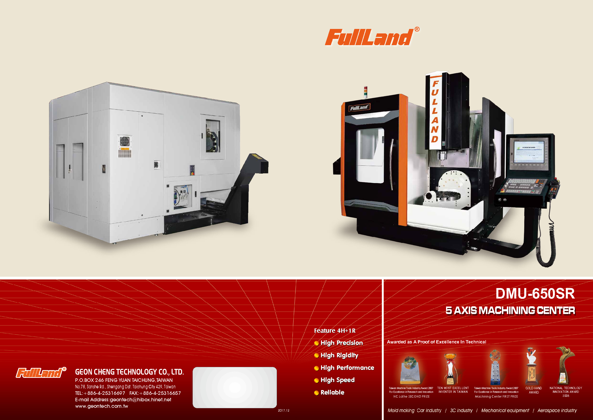 2003 ● 研發完成五軸同動DMC龍門加工中心機,該產品於台北國際機展 (TIMTOS) 中榮獲「工具機研究發展暨創新產品競賽」入圍獎