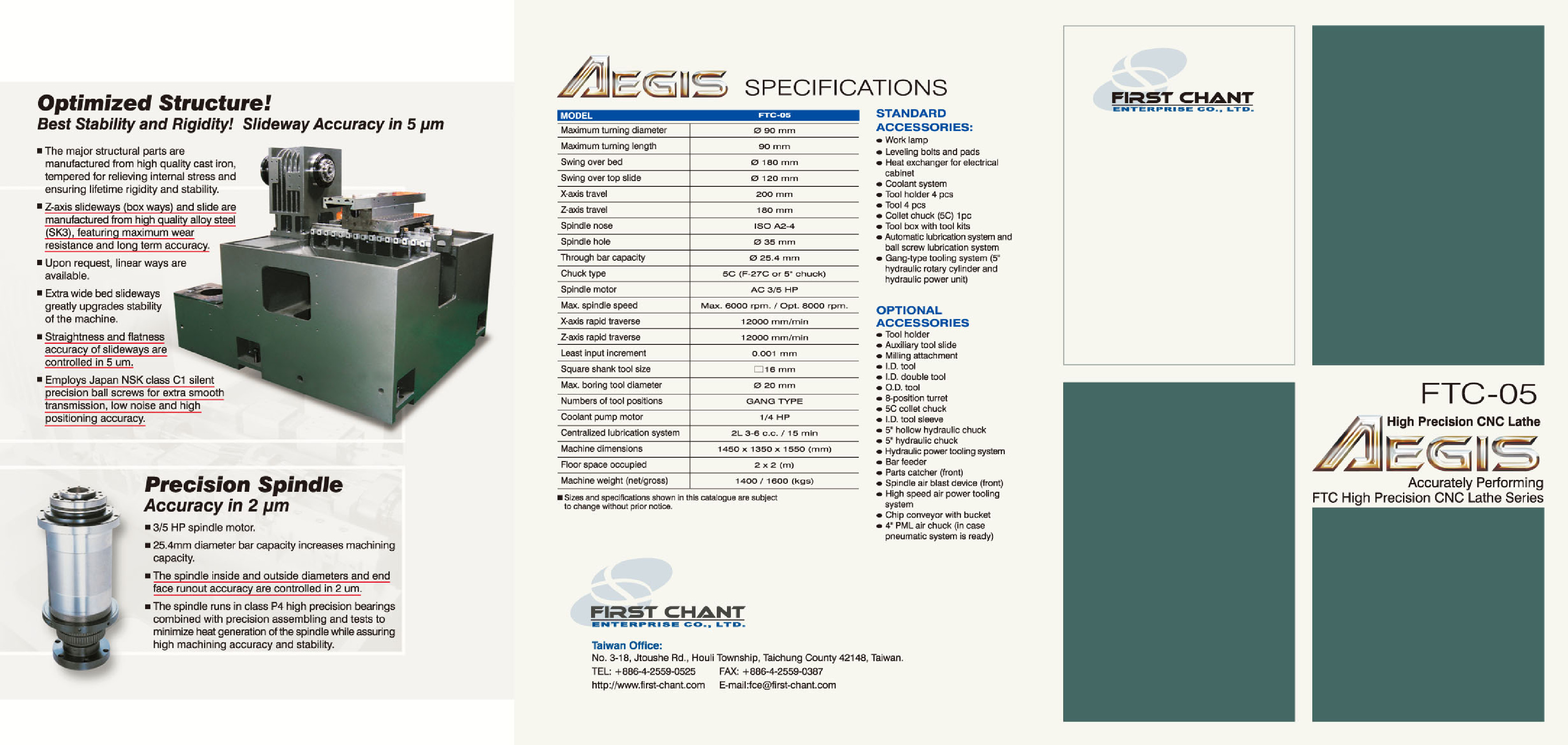 凡仕成企業有限公司(AEGIS CNC) 從成立之初,代理日本星辰(citizen) 精密車床到自行生產,至今已邁入第十一年度,一路走來都是將本身產品定位在銷售進而製造介於台灣與日本的中高檔產品,與其他廠商走不同產業路線,並獲得客戶高度認可,本公司產品為保證產品的質量及精度,大部分零、部件都是堅持採用最好的進口產品,如: 日本 C1 級滾珠螺桿 (FTC-5、FTC-10)、刀塔、硬質合金鋼滑座、義大利進口油壓單元及電控的零、組件等,再加上有長期經營高檔次產品及產業多年經驗,深深瞭解客戶對設備的實際需求,對於設備本身可說是不遺餘力的改善增進,至今才能在各種精密加工產業,如: 光學、電子、醫療器材、航太、航空..等,佔有一席之地,並為台灣機械業界 爭得與日本機械同等競爭的機會。