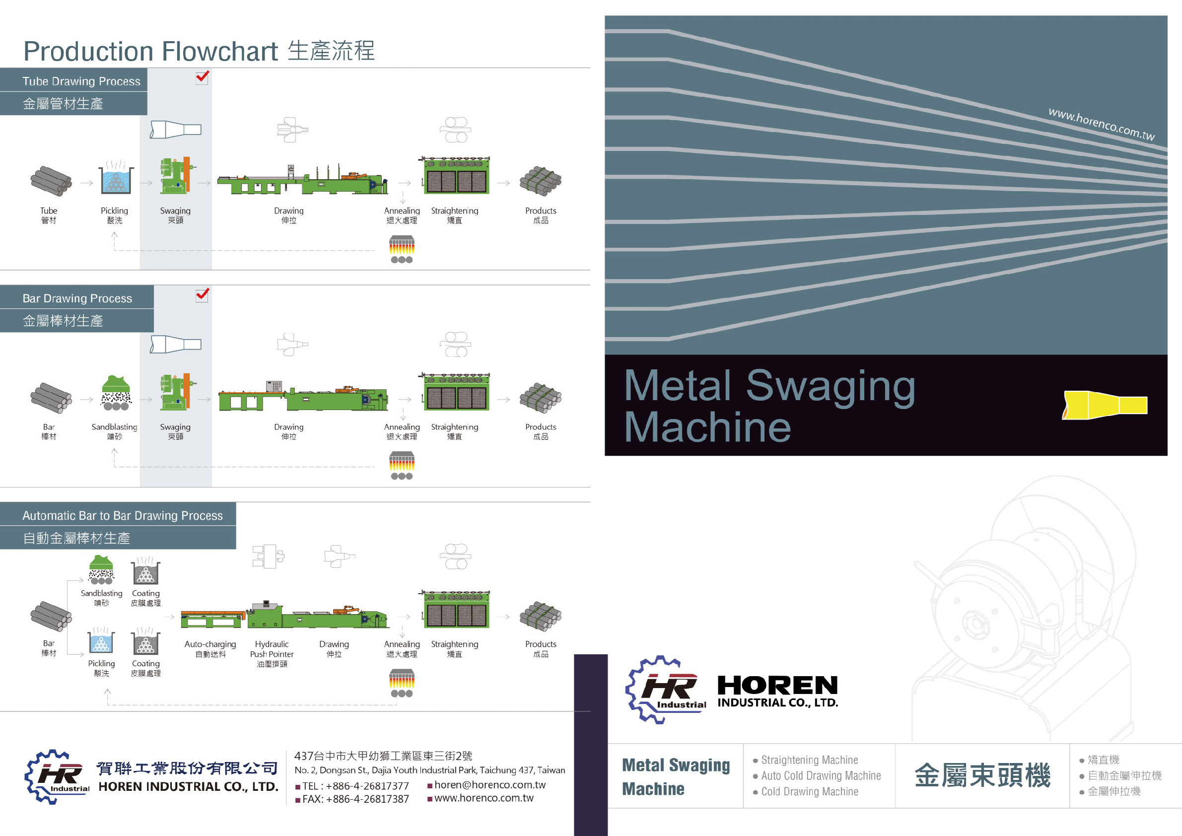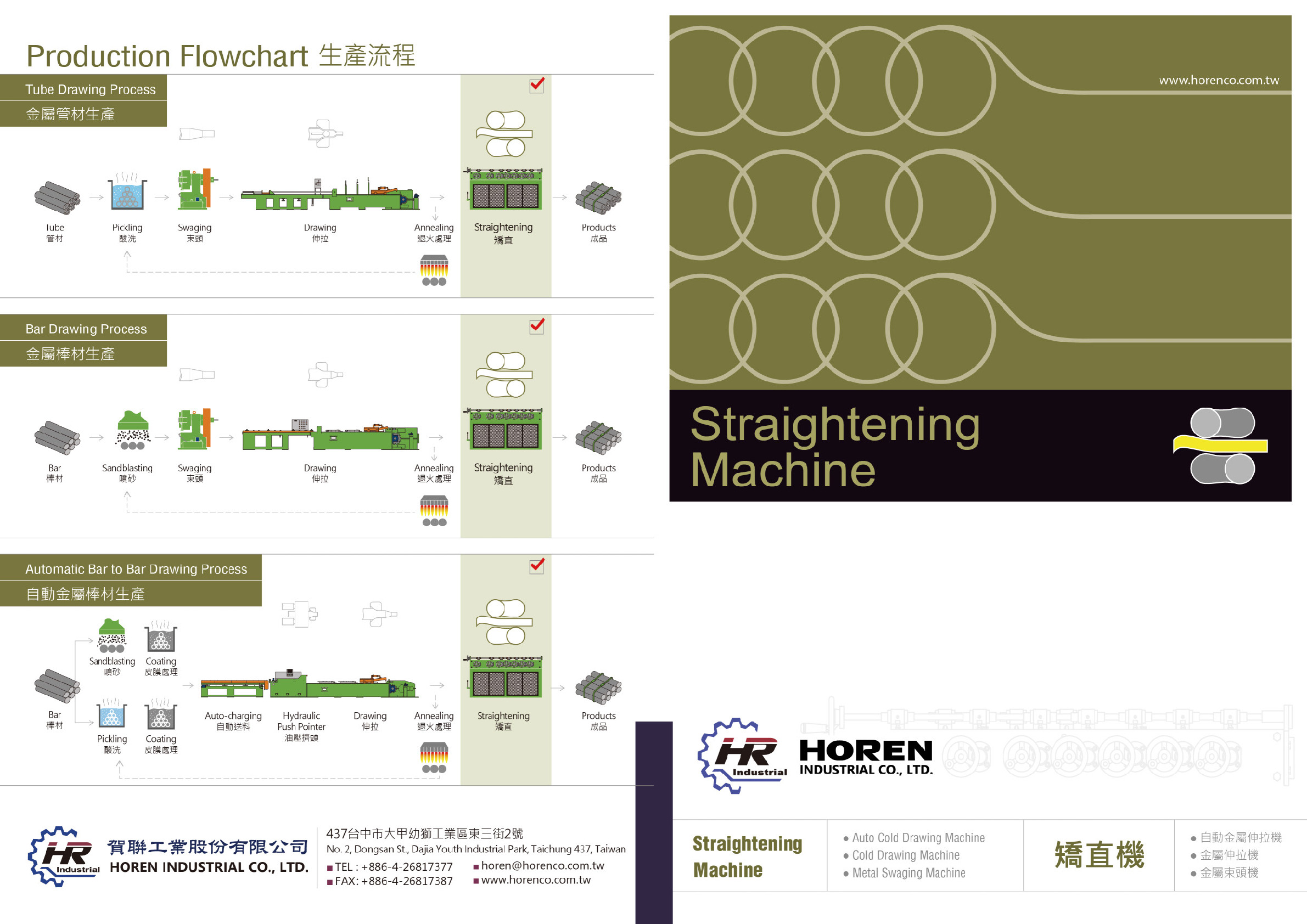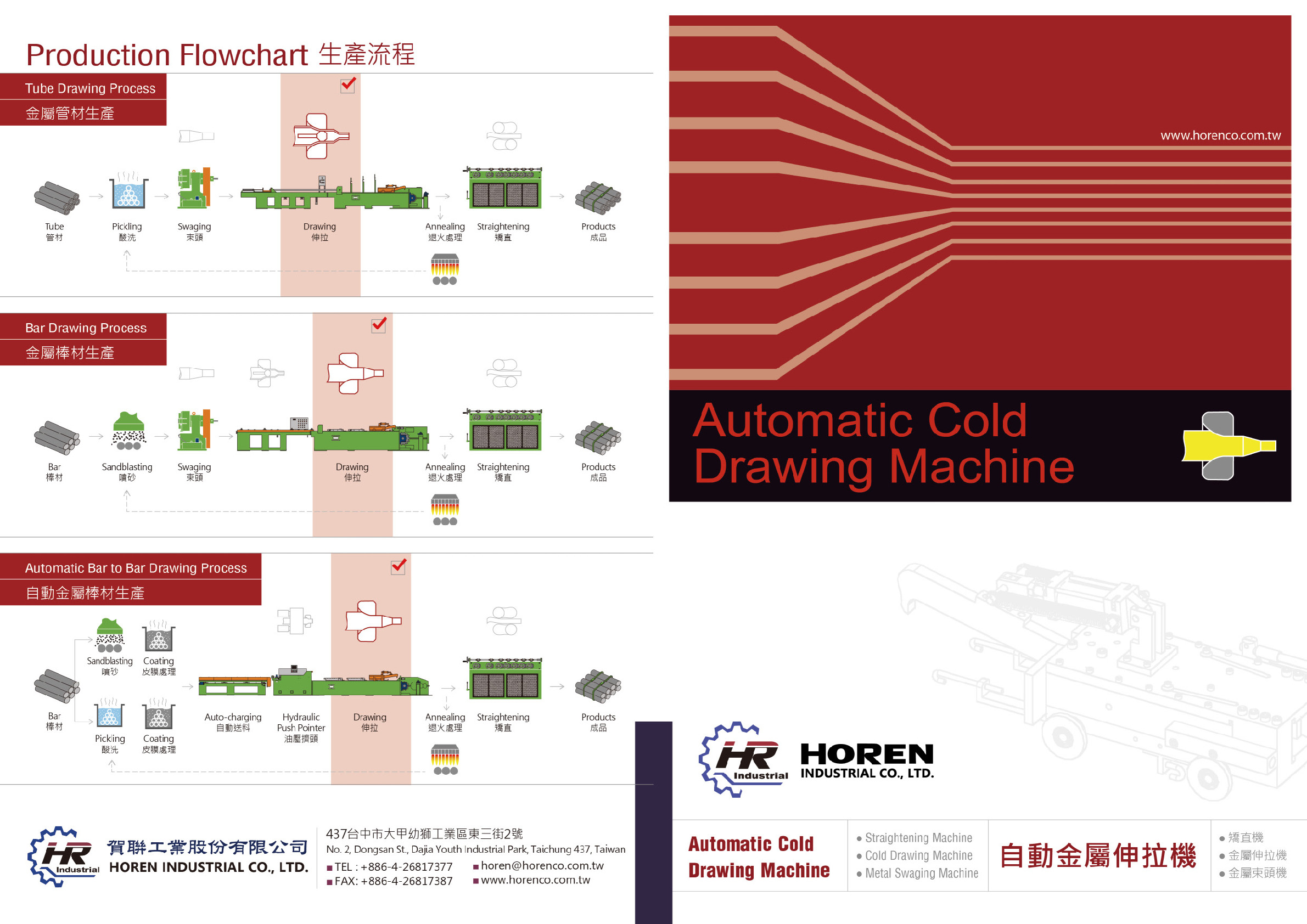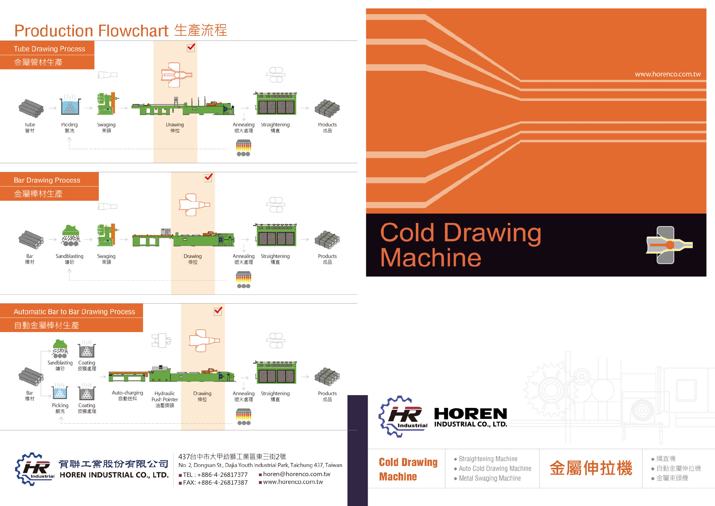 公司營業項目以整廠機械設備設計及製造為主,而個別獨立產品項目,可依照客戶製程的加工需求,提供相對高成本效率的整合性選擇,滿足廣泛的金屬加工產業領域中,所需之工業用材料尺吋及規格。在多變的產業需求中,公司一貫維持傳統產業,在金屬加工設備上的基本需求,同時也秉持著求新求變的態度來面對新的挑戰,而至今所製造的設備,均依當今該加工製程技術,可達全球工業標準為目標。為因應顧客需求的變化,公司除了自主性開發之外,也不斷地改良其周遭輔助設備,以協助客戶自動化生產做為努力目標。 E-mail: horen@horenco.com