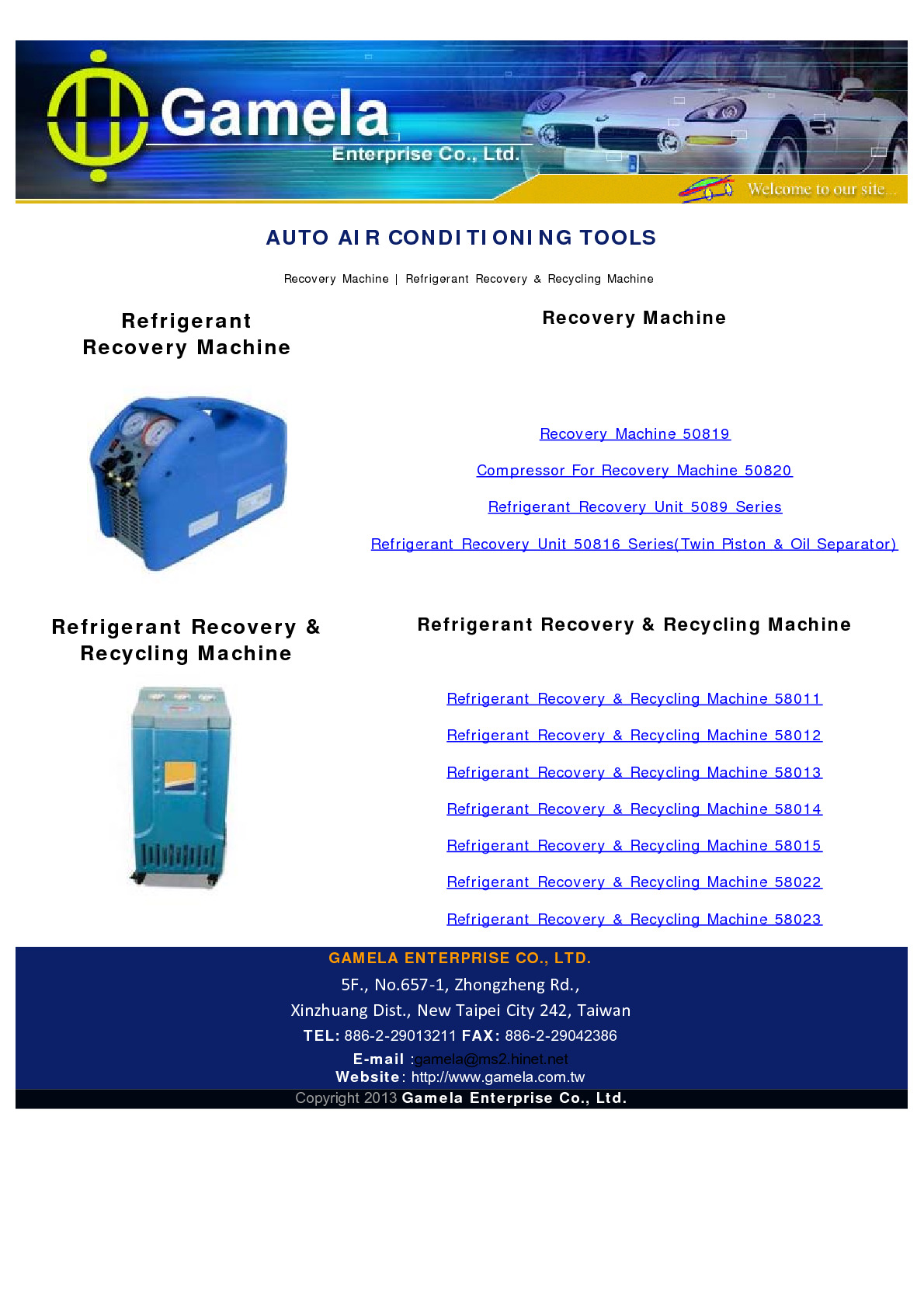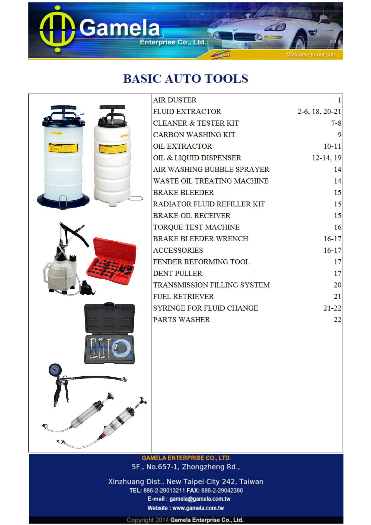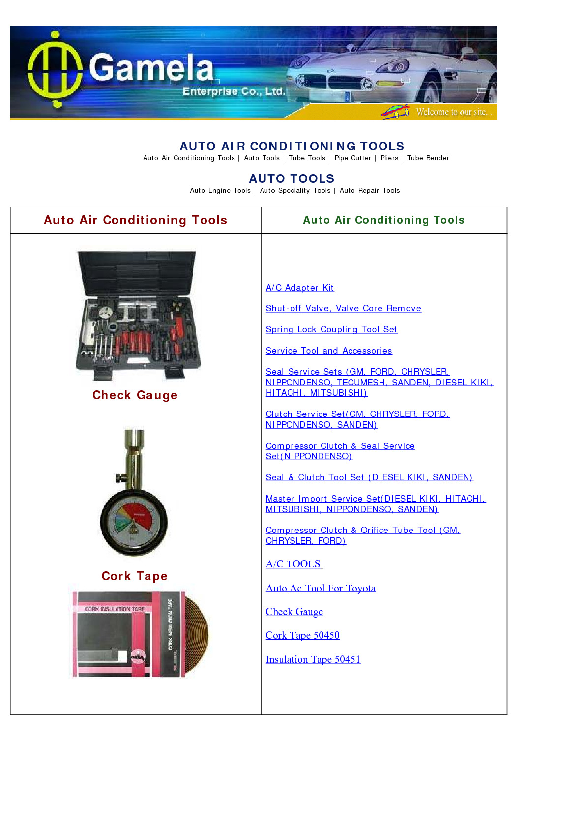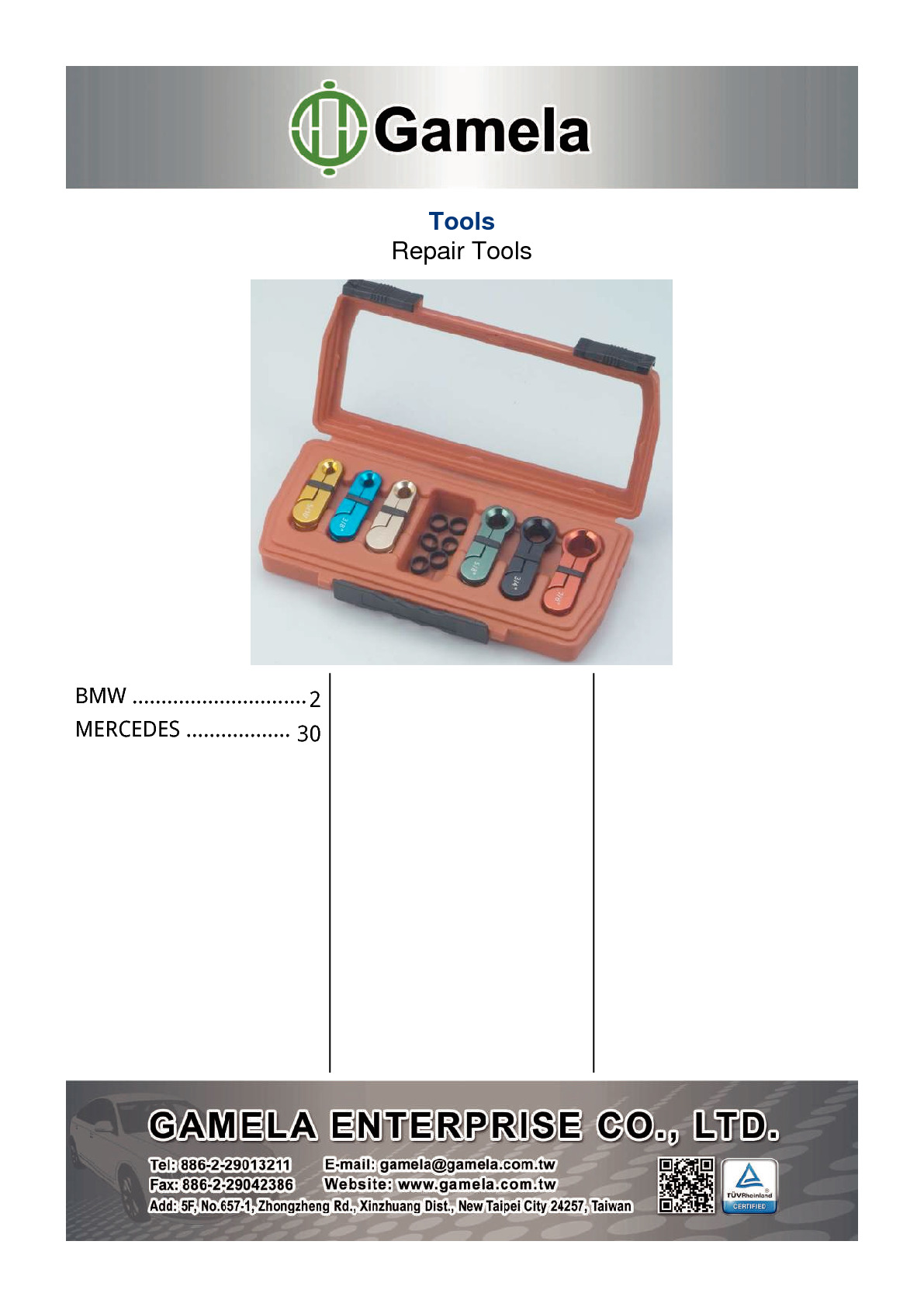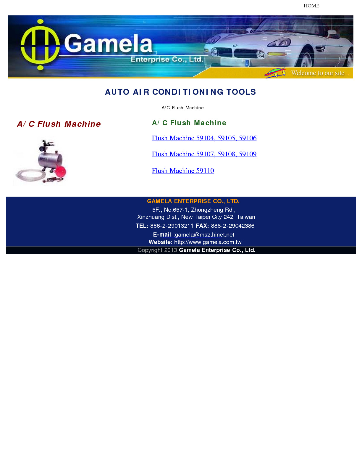 Established in Taipei, Taiwan in 1990, Gamela Enterprise Co., Ltd. is mainly provide Auto Air Conditioning Parts and Tools more than 1,000 kinds of cooling parts and tools for European, American, and Japanese cars. Adequate parts provisions have built a perfect supply system for this field.