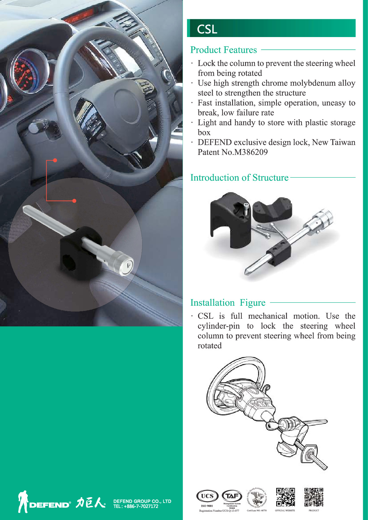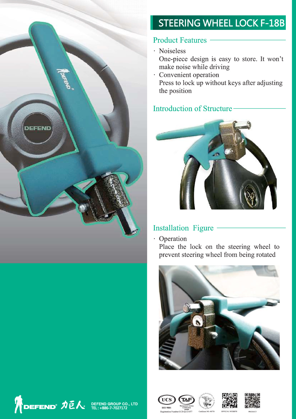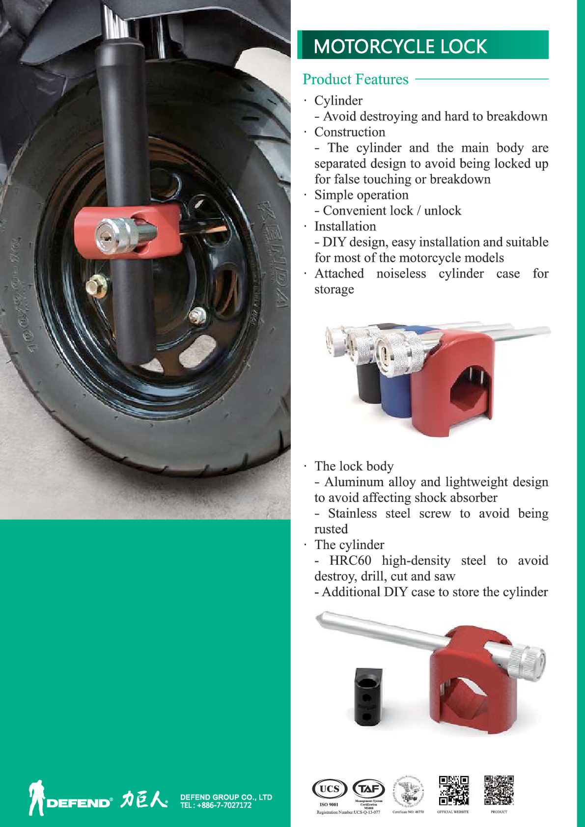 DEFEND-LOCK於中歐之捷克成立、主要產品以傳統家用防盜掛鎖、汽車方向盤鎖、 U 型排檔鎖等防盜鎖為主。