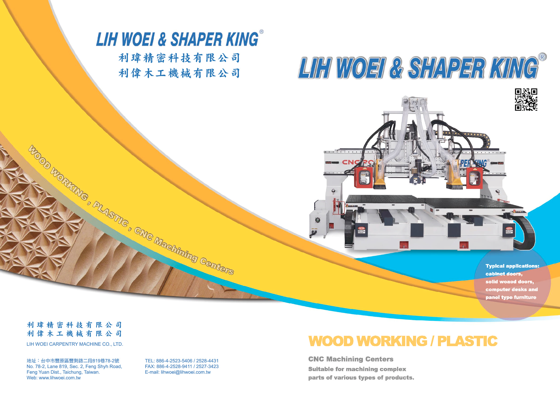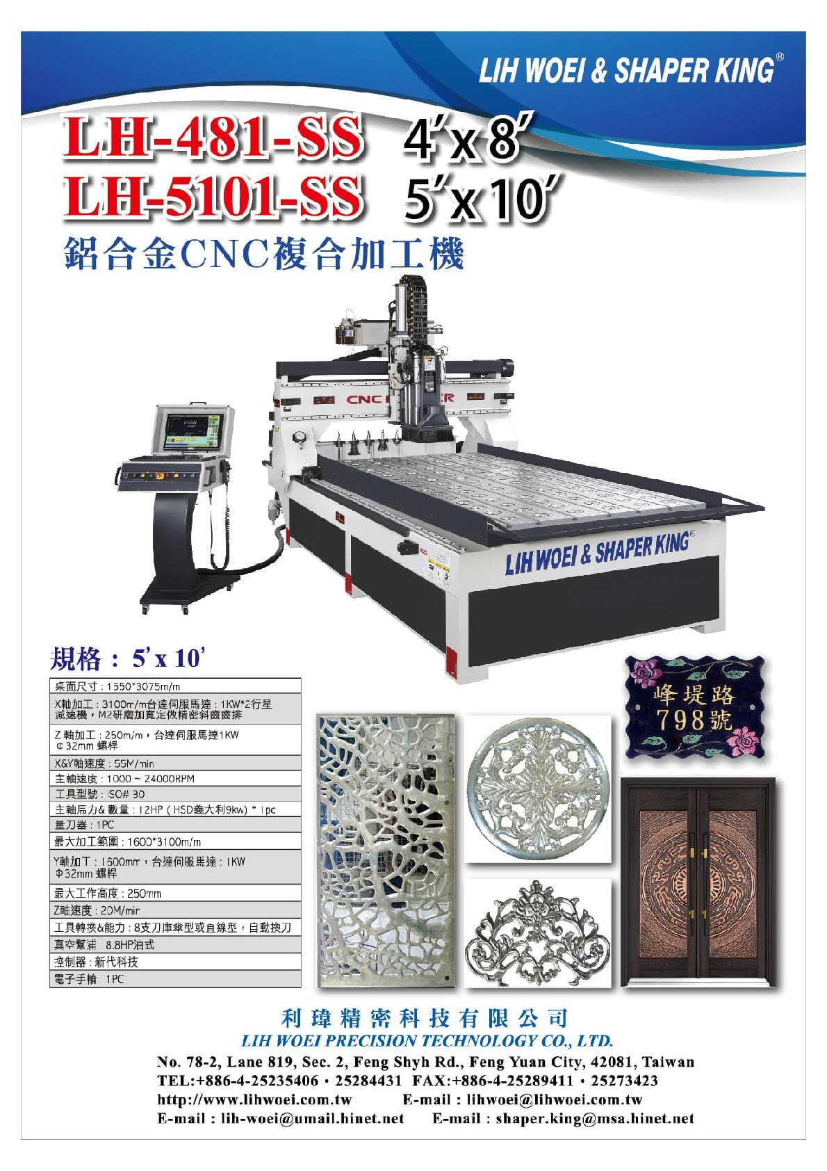 利瑋精密科技有限公司已成功的研發出5軸CNC複合加工機,成立於1985年,利瑋精密的3軸, 4軸,5軸CNC 已贏得許多國家客人的讚賞和滿足需求,此3軸頭、4軸頭、5軸頭CNC 具自動換刀功能,客戶可以依需求選擇功能,機台可用於進行鋁板等的加工。
