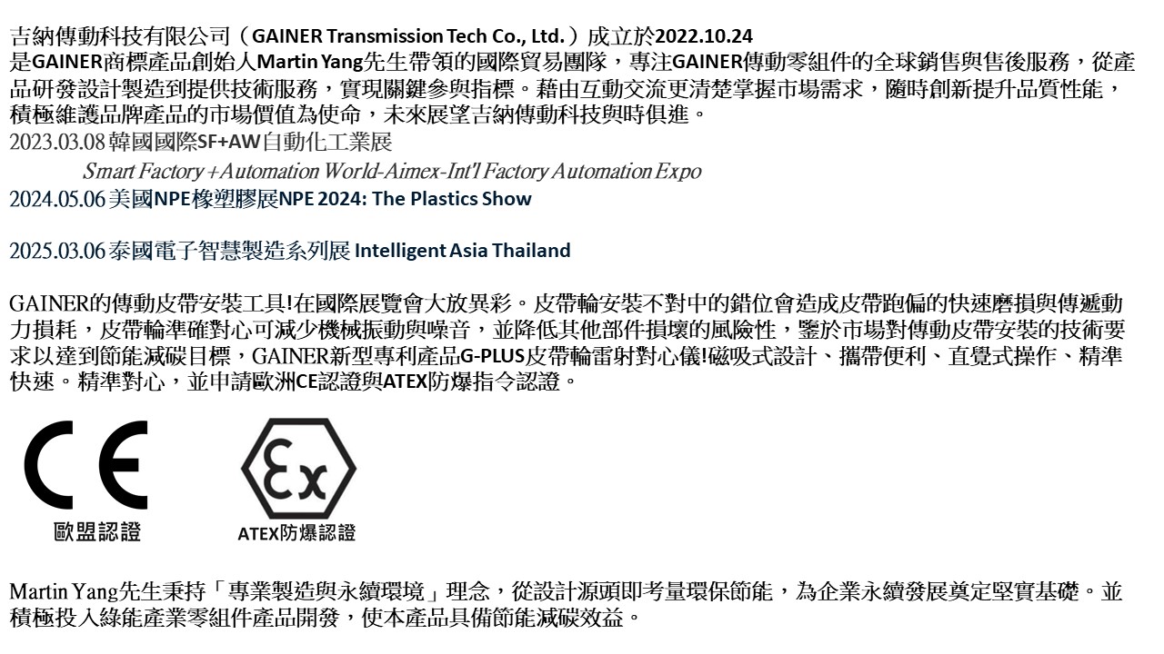 At present, the GAINER’s new logo is infinity and beyond, the boundless outer space. Also, it represents the zero clearance gap timing transmission going to the new era. The spirit of GAINER is continuous development and creation that never be surpassed. GAINER power transmission, Keep abreast of the times.