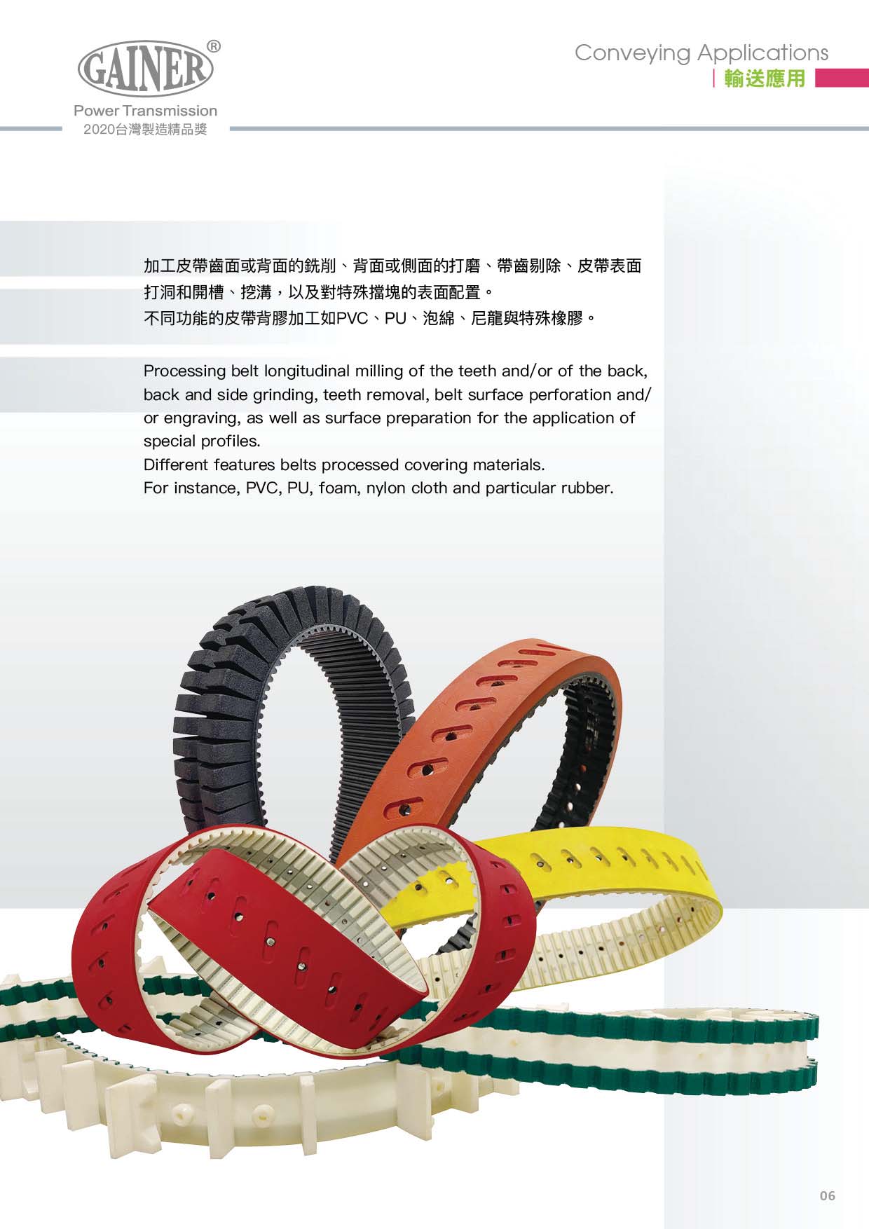 Nowadays, other than many patent technologies, GAINER is more focused on the technical improvement of PU timing belts. Improve the quality precision, and focus on the development of the zero clearance gap timing pulley and provide better quality of the set with timing belt and zero clearance gap timing pulley for automation industry. Provide one-stop purchasing service essentially.