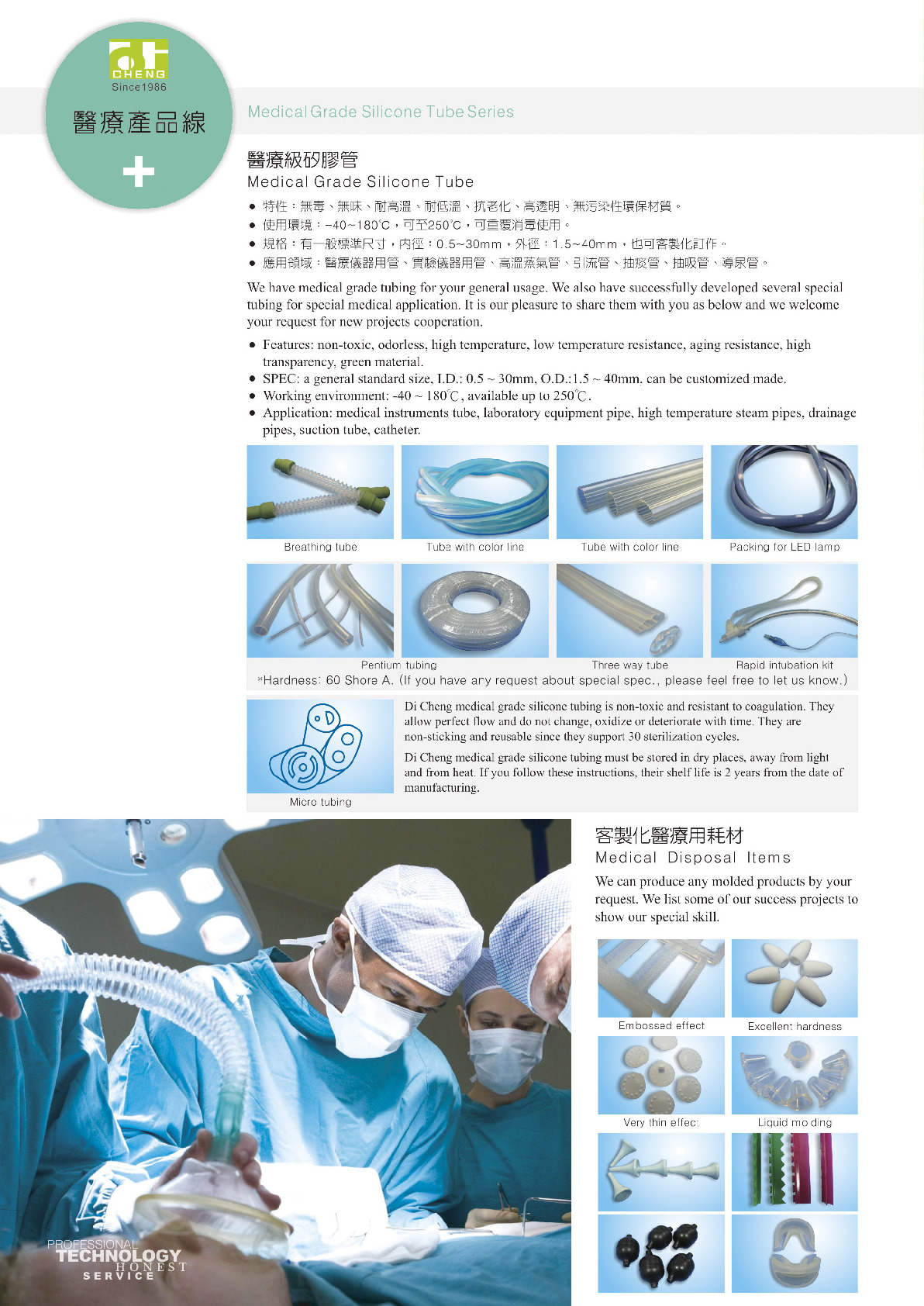 狄成是一家擁有ISO9001和ISO13485醫療品質管理系統認証的工廠,我們將秉持創業的初衷「誠信互惠、共創雙贏」,期許自己成為矽橡膠領域的博士級工廠,為各個產業提供專業級矽膠押出、射出、模壓等專業製造服務,邀請您成為我們的共同成長夥伴,世界有你、有我,未來會更美好。