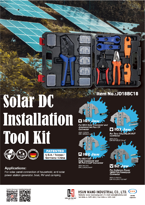 我們是台灣專業手動壓接鉗工具的生產製造商,在市場上為業界電子電機、汽機動車輛佈線維修,提供更多元的工具選擇。我們的手動式壓接工具和市場上高價位的電動、液壓設備工具比較,具有價格競爭優勢。對於市場的使用者而言,除了方便取得,同時也具備更多樣性的應用特點。壓接設計是採取快速替換的專利結構,可依據使用設備或配線的端子、連結器需求,提供快速更換壓接頭,更貼近市場端消費者的需求。我們能夠解決的範圍包含改裝車市場、工程車、航太、船舶等皆能做配合。