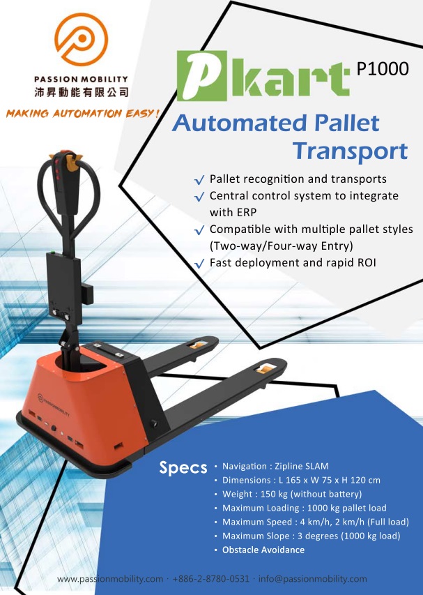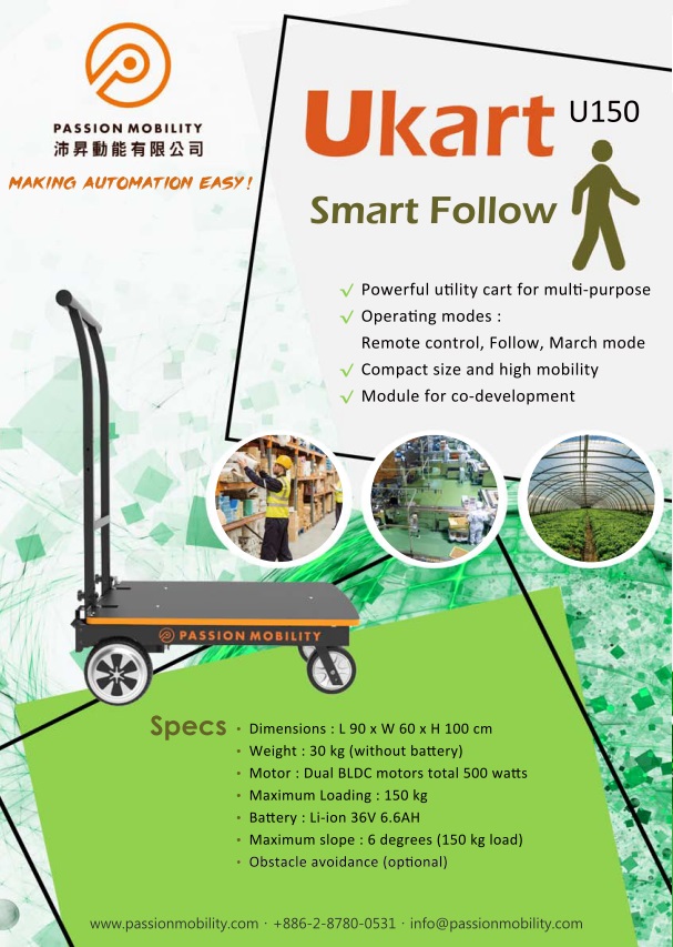 沛昇動能專注於自動控制和運動傳感控制技術研發,於2011年發表全球第一台具有跟隨功能的高爾夫球童機器人CaddyTrek。近年將相關技術拓展至運用於倉儲及物流業搬運自動化設備,也推出具有 AI 視覺辨識導航功能的Ukart/Tkart系列產品。沛昇動能將持續致力於智慧移動設備的創新,為全球客戶提供先進的解決方案。