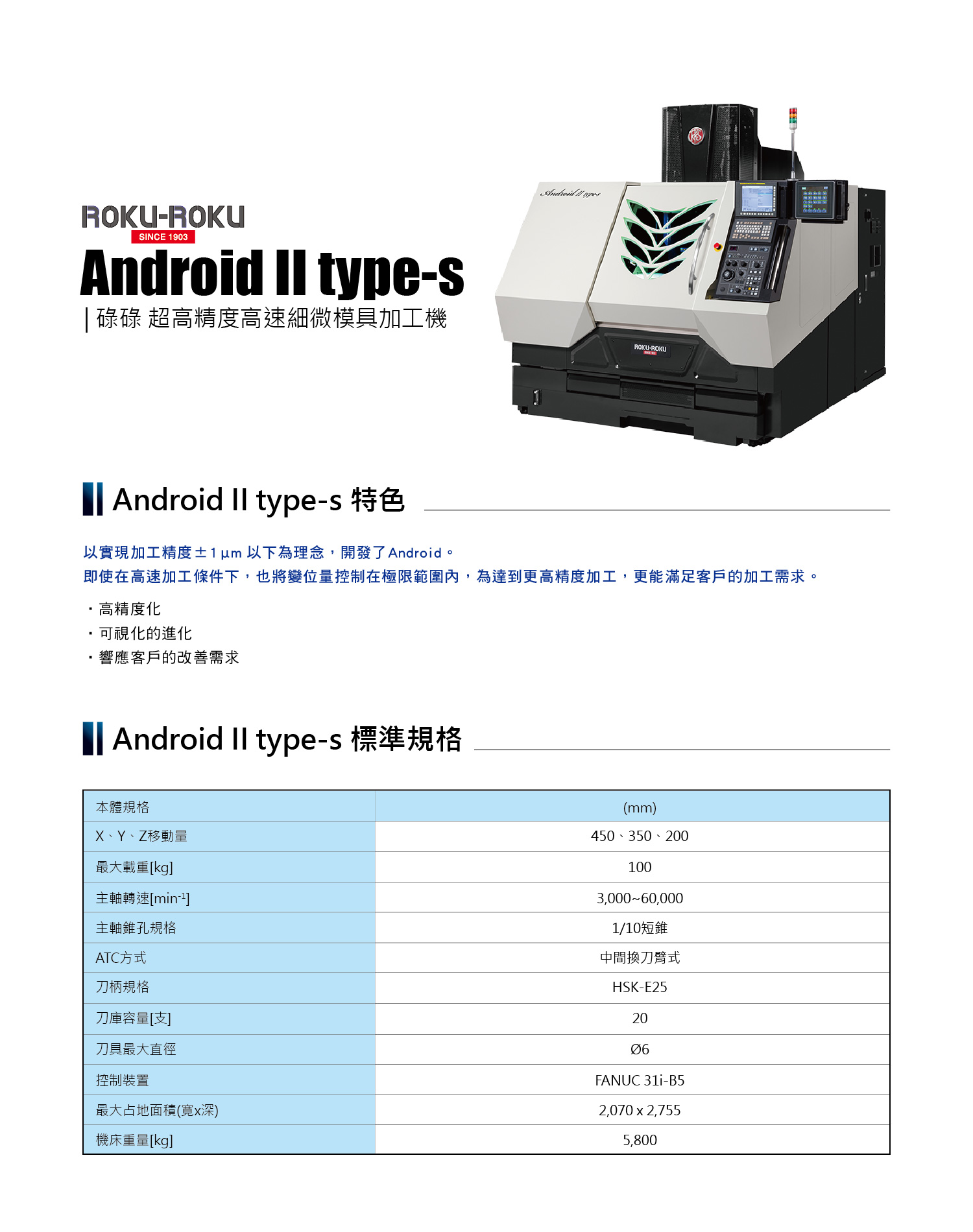 - ROKU-ROKU Android II type-s | 碌碌 超高精度高速細微模具加工機