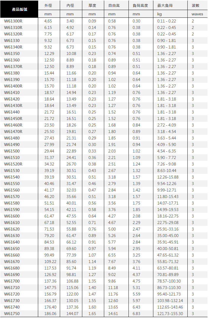 SPEC 波浪彈性墊圈由高碳鋼製成,適於小撓度、推力負荷之用,尤適於徑向空間有限的場合使用。
