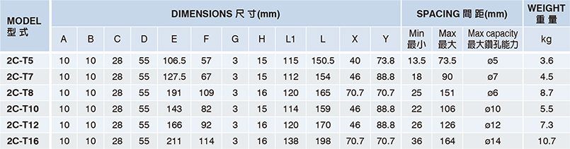 * 主軸可正逆轉,適合鑽孔及攻牙