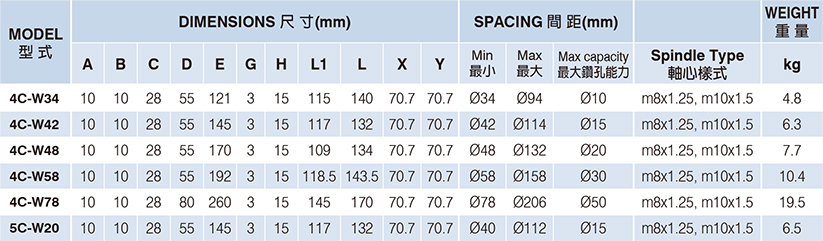 木材最大鑽孔能力 : ø10 - ø 50 mm。