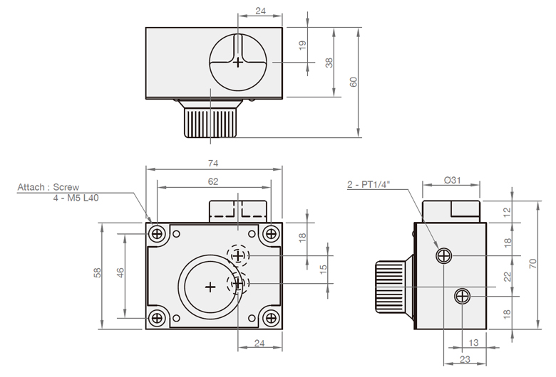 本系列產品整體磷酸鹽染黑處理,外表不會生鏽,調整部亦為180°。機械旋轉(L.R)型,開口為雙開口,選擇產品單純化。滾輪(C)型設計成滾珠方式,沒有複雜的外型,下方無吸氣孔,不怕因雜物而卡軸。