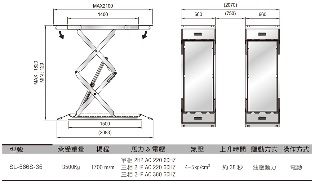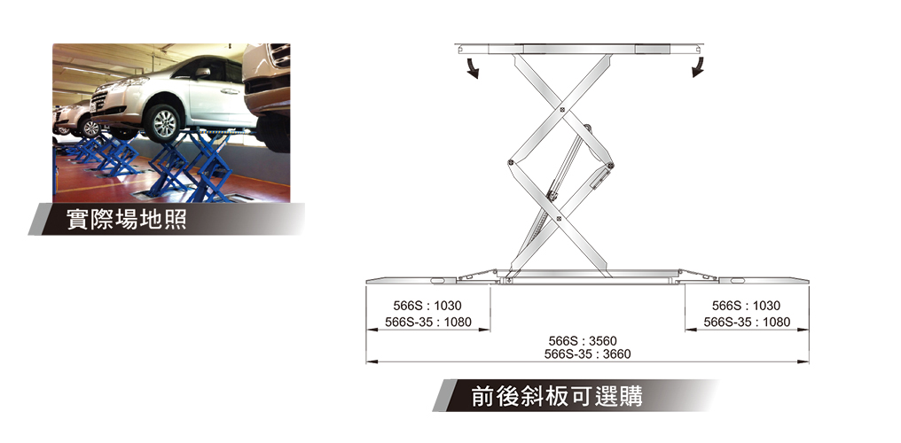 4. 中央同步油壓缸設計,控制平板同步上升下降。