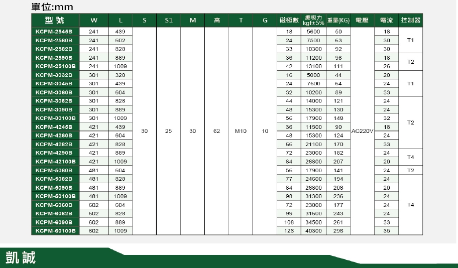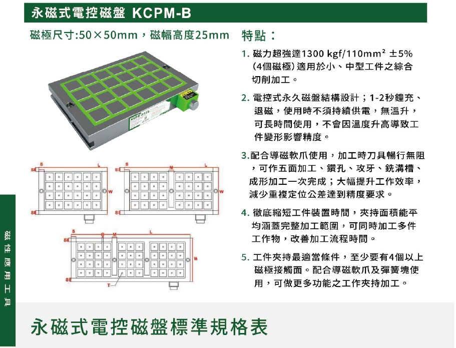 1. 磁力超強達1300 kgf/110mm²±5%。(4個磁極)磁極尺寸:(50×50)